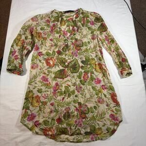 Zara basic womens green pink floral sheer blouse. 3/4 sleeve, tunic. Size S