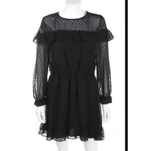 🍁 Zara black Swissdot chiffon dress Small 0387/161