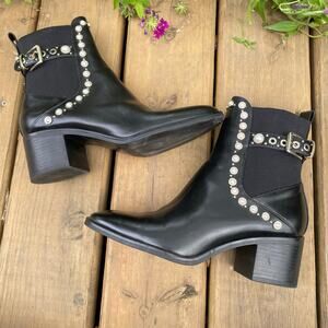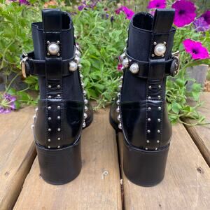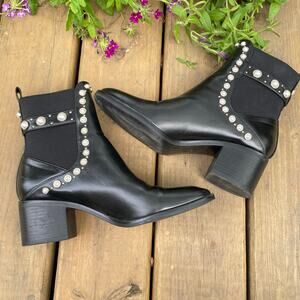 Zara black ankle boots with pearl accents