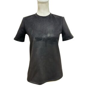 Zara black faux suede short sleeve top back exposed zipper with pull tab. Gold tone zipper. Stretchy. Made of polyester and elastane. Euc