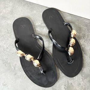 Zara black flip flop sandals gold details size EU 40 / US 9.5