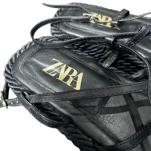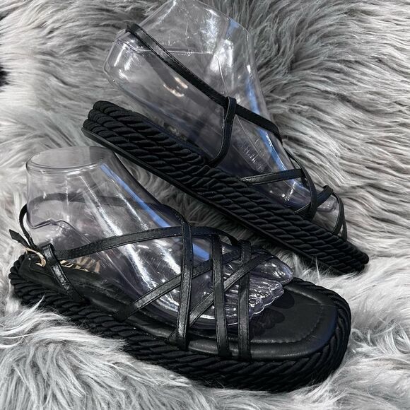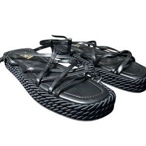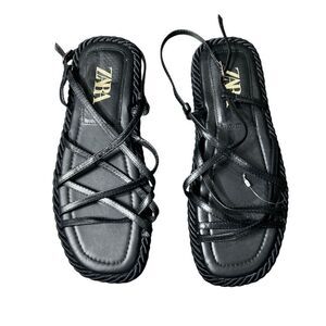 Zara black leather rope platform sandals Size 40