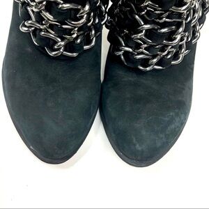 Zara black leather silver chains ankle booties heeled boots EU7, 6.5-7