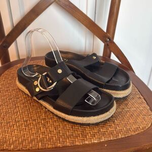Zara black leather and gold hardware espadrille slide sandals 37/7