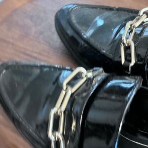 :Zara Black Patent Leather Chain Detail Loafers – Size 9.5