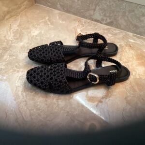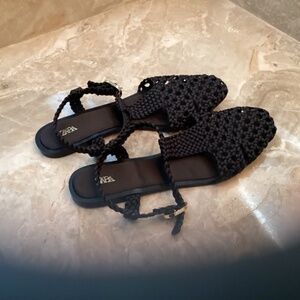 Zara woven black sandal with strap. Never worn. Size 39