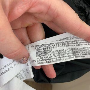 Zara water repellent parka with high collar and hood. Size large. Long sleeves with adjustable straps at cuffs. Front flap pockets. Side zippers at hem. Adjustable elastic drawstring waist band. Front heat sealed zipper and snap button closure. Excellent condition. Armpit to armpit 23-24”, length 27”