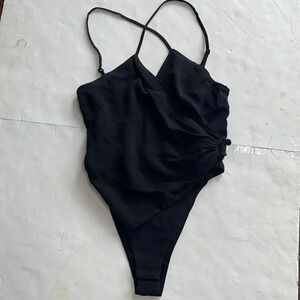 Zara black strappy bodysuit w/ asymmetrical hem. NWT