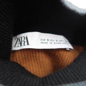 Zara black tan grey white ribbed knit turtleneck sweater S