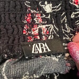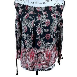 Zara black top Off the Shoulder Paisley Embroidered Blouse size S boho hippie