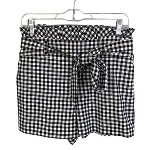 Zara black white gingham speck paper bag tie front shorts size M