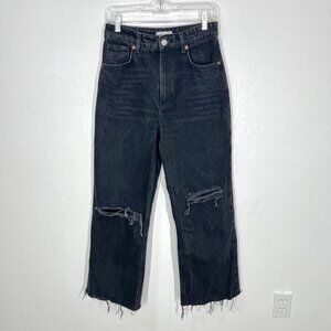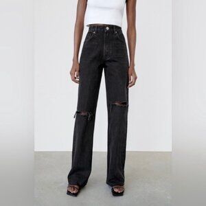 Zara black wide leg ripped knee Jeans Size 6 High Waisted Y2K