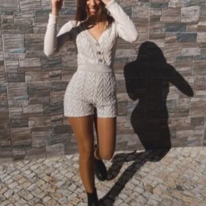 ZARA WOMAN BEIGE MARL CABLE KNIT SHORT JUMPSUIT SIZE SMALL AW20
