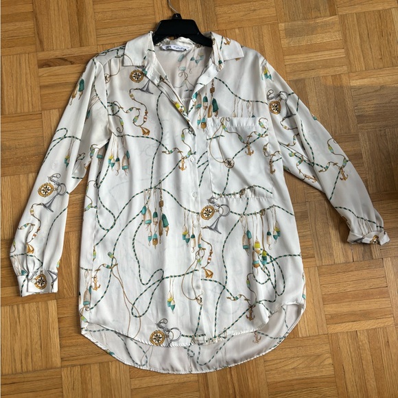 Zara button up blouse, silky texture and slightly oversized.