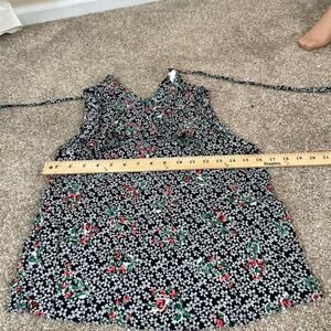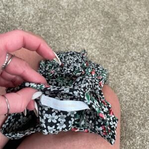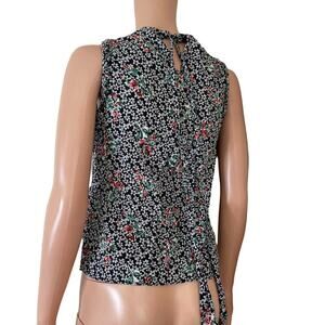 Zara blouse black ditsy floral print ruffle collar lightweight top SZ SM Zara