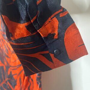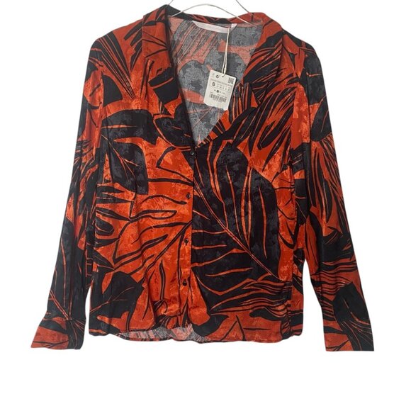 Zara blouse button down red black size S long sleeve satin feel NWT