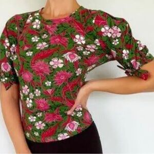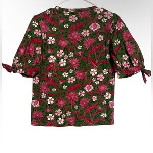 Zara blouse floral tie sleeve color:green/pink Size:S