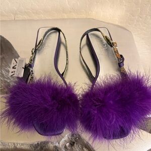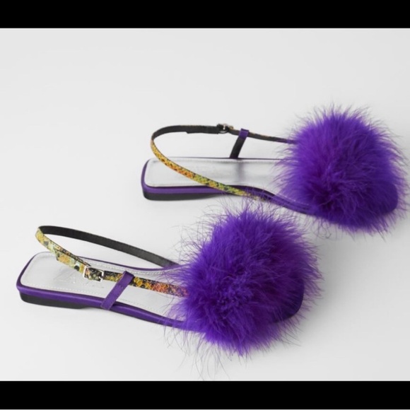 Zara blue collection purple faux fur flat sandals