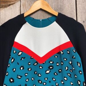 Zara blue color-block cheetah print reglan sleeve sweater dress
