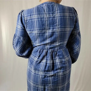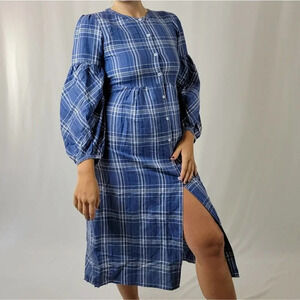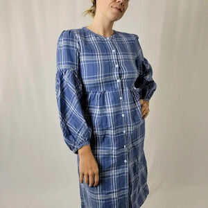 ZARA SS18 BLUE CHECK TUNIC DRESS LINEN Front button-up