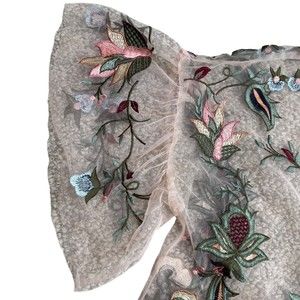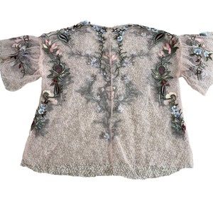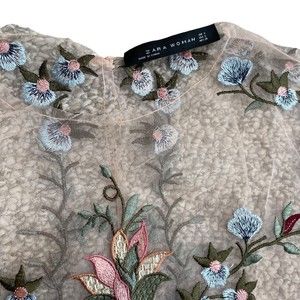 Zara blush embroidered sheer mesh top oversized sleeves size S