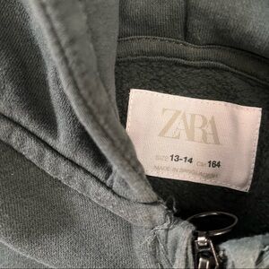 Zara boys hawk quarter zip hoodie olive green 13-14 years full zip pocket