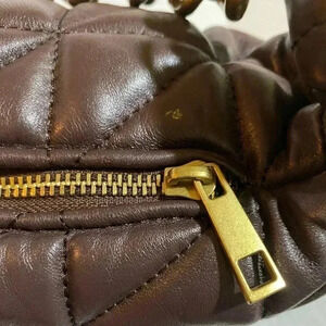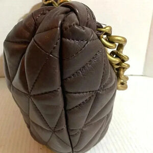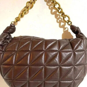 Zara brown quilted Faux leather shoulder handbag with gold tone hardware main compartment 1 zip pocket closure at interior wall fabric lining zip closure at top height 11” width 17.5” depth 3.5” strap 11.5”The dimensions are based on approximately measurements before placing an order please check take a moment to view all photos using feature for a closer look