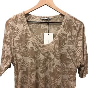 Zara brown sheer fern leaf design hi lo hem tshirt medium NWT