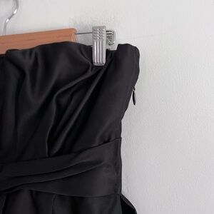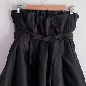 Elegant black mini dress. Strapless design. Balloon skirt style. Perfect for evening wear.