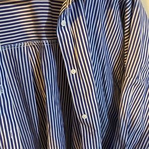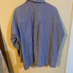 Cute and comfy Zara button down, long sleeve, oversized, white buttons, blue and white vertical stripes