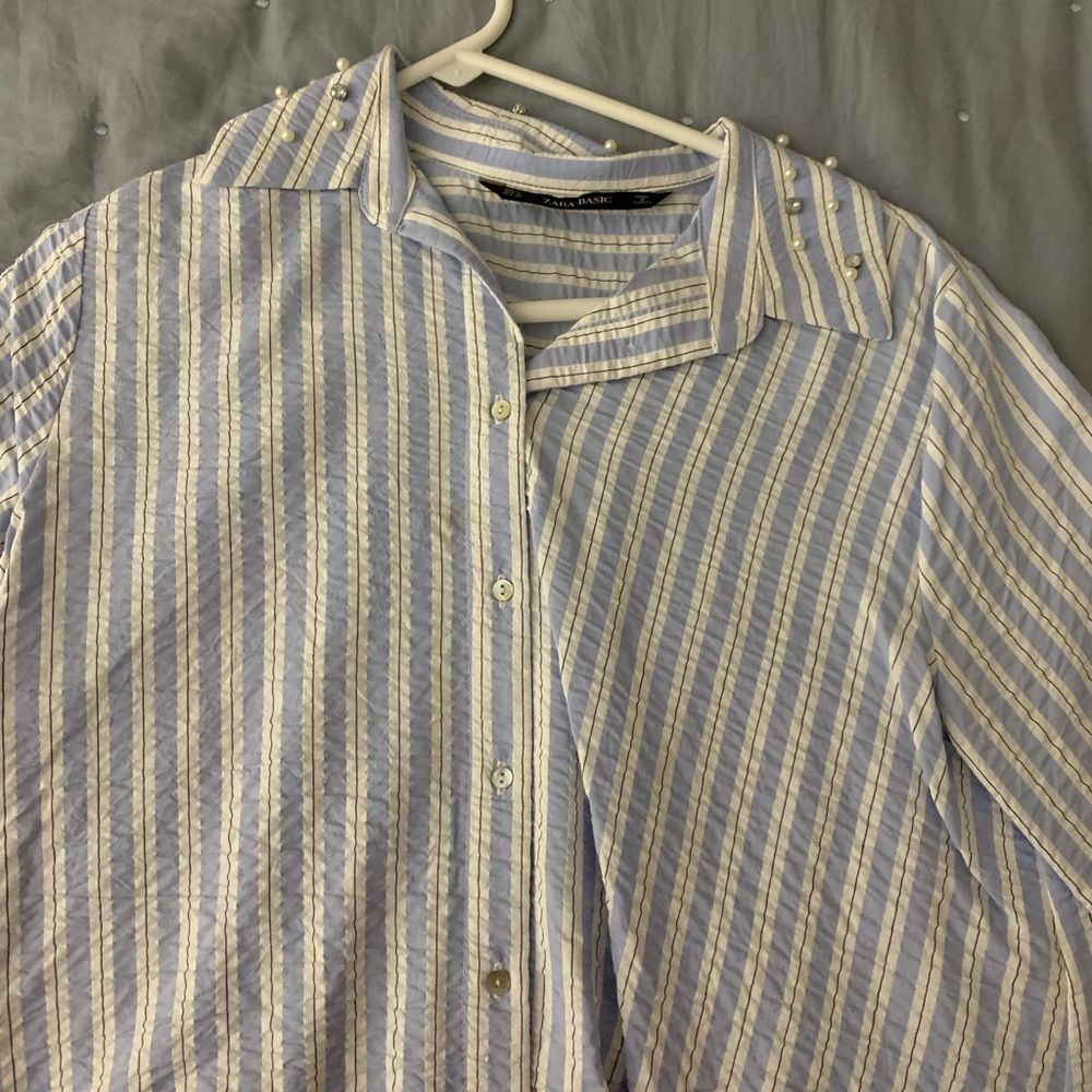 Zara button down with pearl collar. Worn twice. So adorable