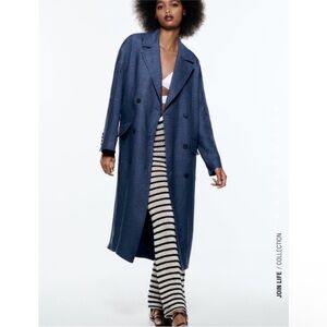 Coat made of 100% linen with the exception of the lining. Lapel collar and long sleeves. Flap pockets at front. Front double breasted button closure.