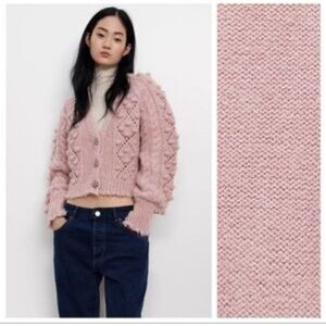 Zara cardigan chunky Pink Cardigan wool alpaca blend small