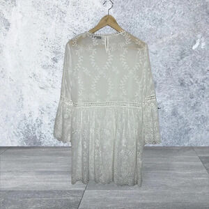 Zara chiffon bright white lace dress size Large