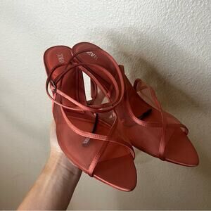 Zara coral red mesh strappy pointed heels NEW 41/10
