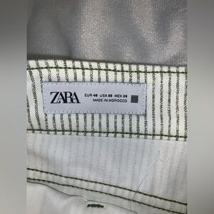 Zara cream and green Pin Striped Wide-Leg high rise 100% cotton jeans Pants 8