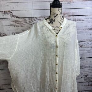 Zara cream button front size large slouchy bat sleeve sheer tunic blouse top