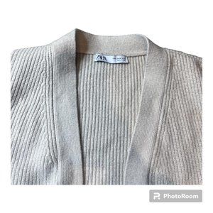 Zara cream colored open front hip length sweater. Size Medium. EUC. Cozy and soft. Perfect transition into spring.