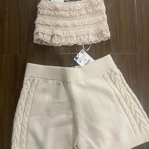 Zara cream knitted shorts set