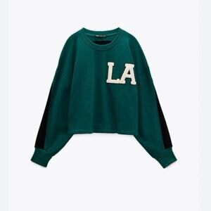 NWT. Zara, crop sweatshirt, medium; says “Wonder”.
