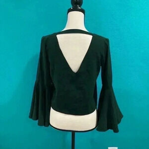 Zara cropped bell sleeve blouse in an emerald green color in size small