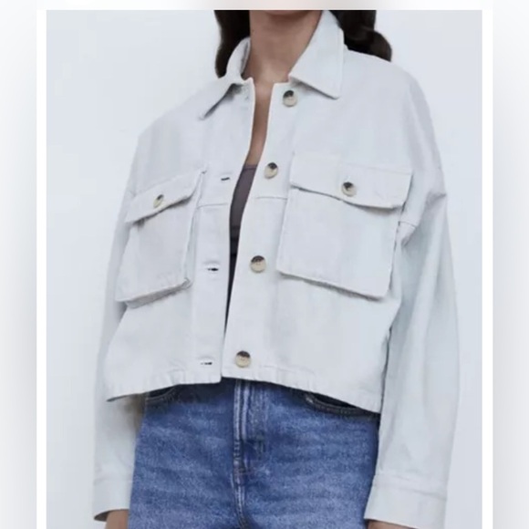 Zara cropped denim button jacket pockets size small