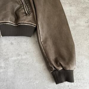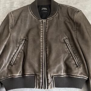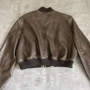 Zara cropped faux leather bomber jacket in distressed brown womens size medium