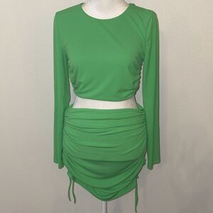 Zara cropped long sleeve ruched mini skirt set