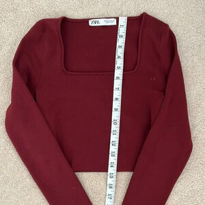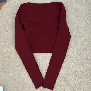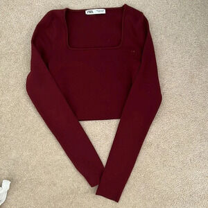 This is a Zara crop top longsleeve shirt in a size medium. It is 100% polyester never worn, but does not have tags. Has a red square neck.