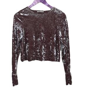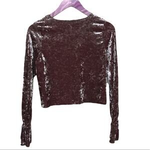 Zara crushed velvet mauve LS. Long sleeved with synched bell sleeves, pink crushed velvet with soft darker pink interior, high neck crop top. Size M. Great condition. Crop top. Missing care tag. A90.