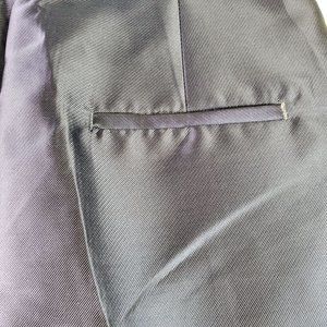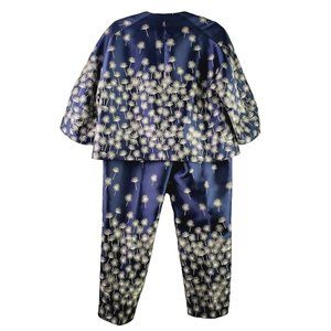 It doesn't get more chic than this -- the bolero jacket and the ankle-length skinny trousers make you look like a runway model! The top is a size medium, but wearable by a large, and the trousers are a size large. I wore it with an ivory camisole and loads of pearl necklaces. Serious style! Your questions welcome.