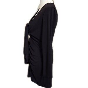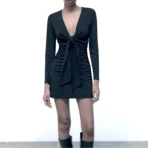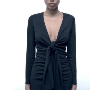 Zara deep v-neck gathered front LBD Little Black Dress, back zip, L