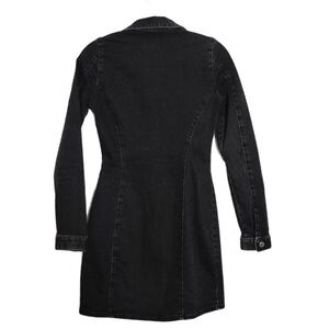 Hi! It's a dark wash, but not true black. The composition is 99% cotton and 1% elastane. It measures 15" pit to pit and hps to waist. Sleeves are 23.5".