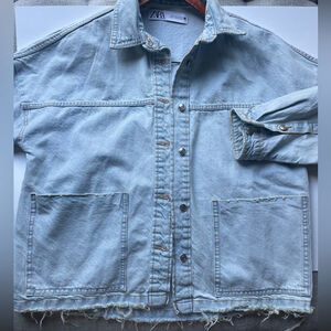 Zara denim light blue long sleeve jacket with front large patch pocket small